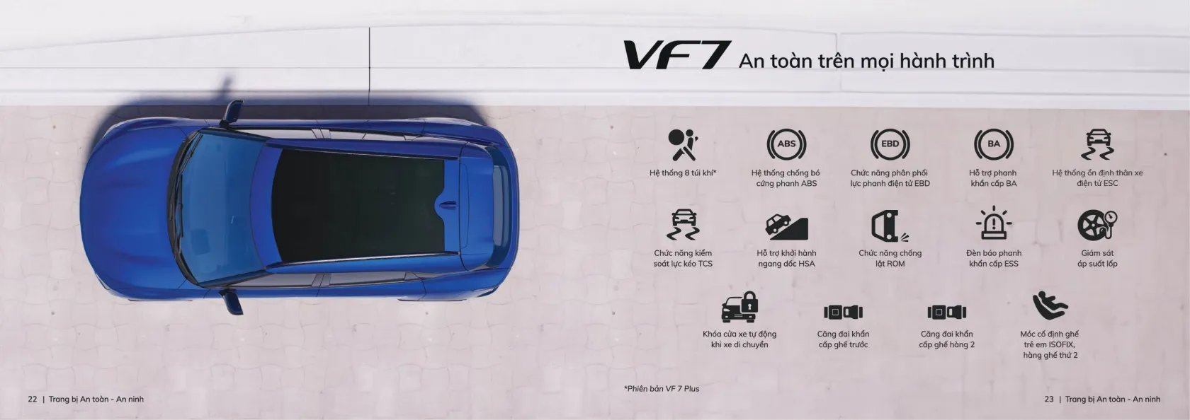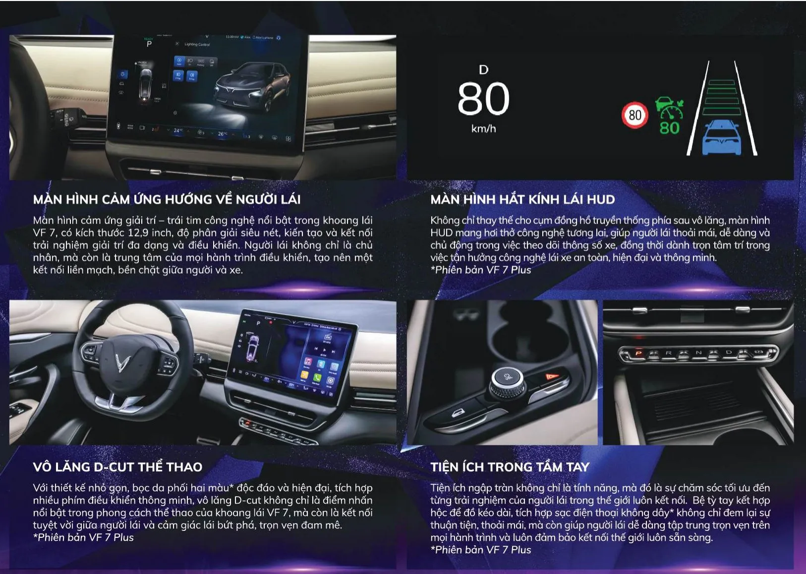 Trong khi đó, VF 7 phiên bản Base được trang bị một động cơ điện có công suất tối đa 130 kW (tương đương 174 mã lực), mô-men xoắn cực đại 250 Nm cùng bộ pin dung lượng 59,6 kWh, có khả năng di chuyển quãng đường tối đa 375 km/lần sạc đầy (theo tiêu chuẩn WLTP). Nếu như phiên bản Plus sẽ đáp ứng tối đa đam mê tốc độ và nhu cầu di chuyển trên những chặng đường dài, thì phiên bản Base sẽ là lựa chọn đầy phong cách và linh hoạt trên những cung đường đô thị.