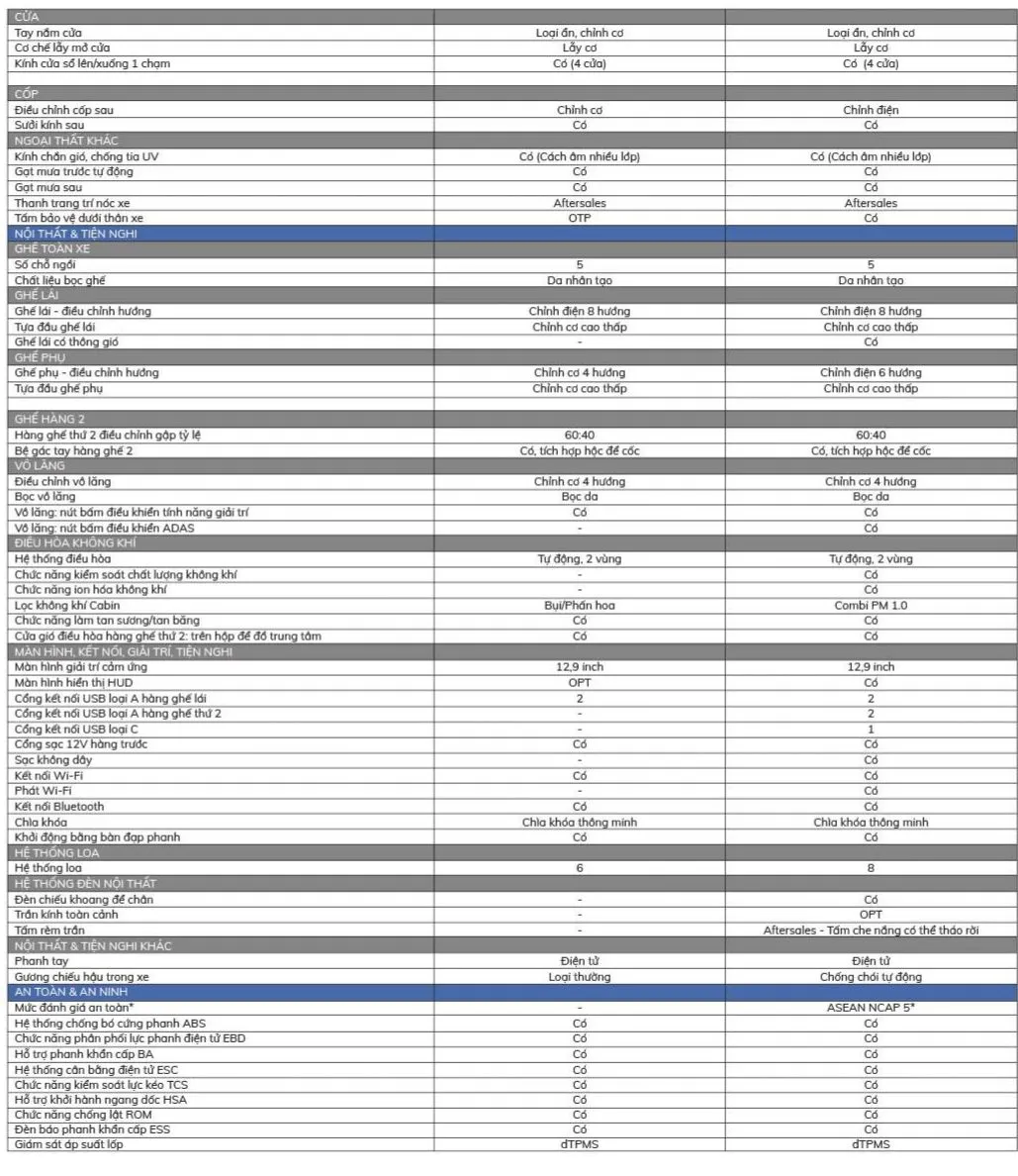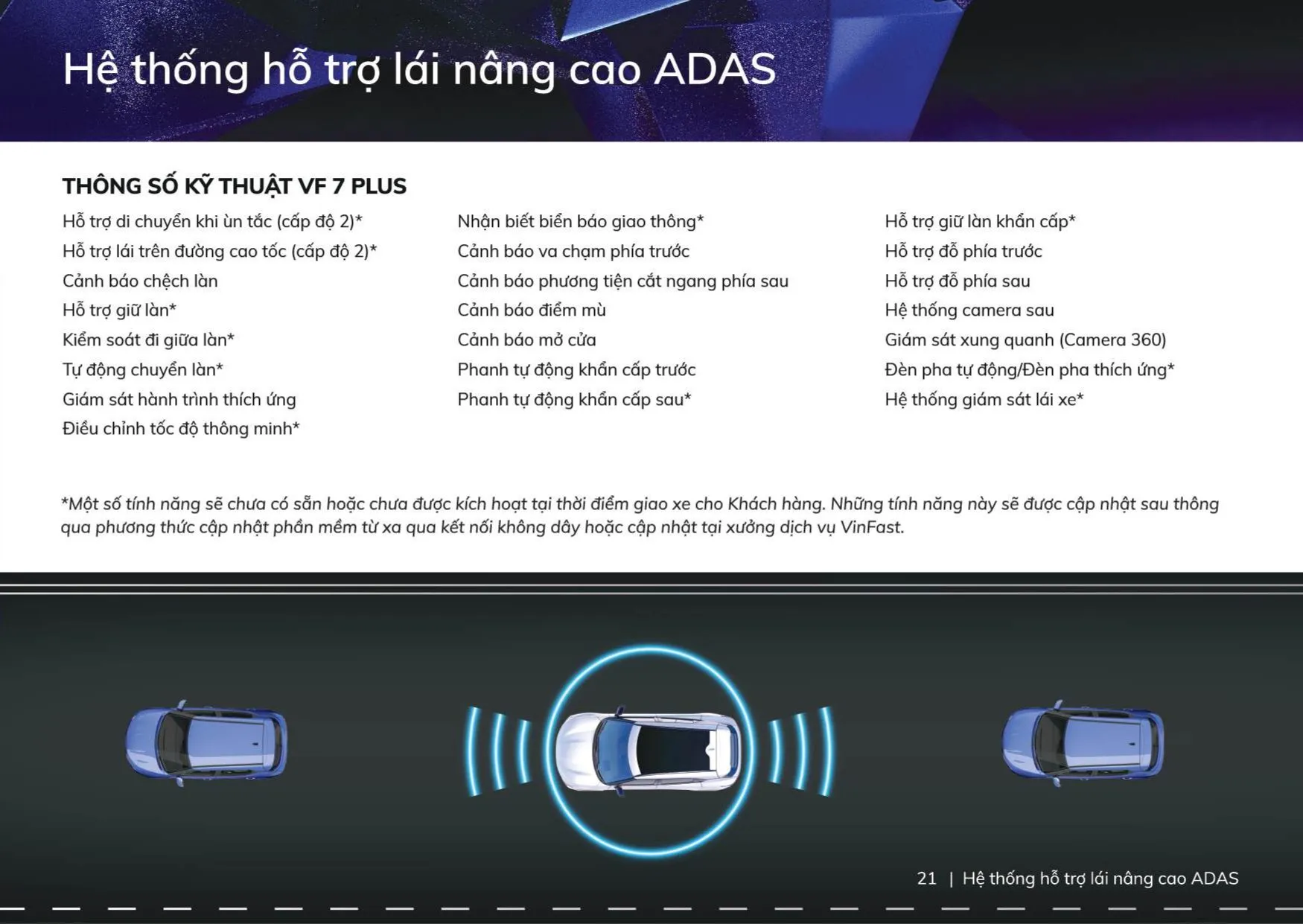 Tính năng ADAS: Giám sát hành trình thích ứng; cảnh báo chệch làn, cảnh báo va chạm phía trước; cảnh báo phương tiện cắt ngang phía sau, cảnh báo điểm mù, hệ thông camera 360 độ...